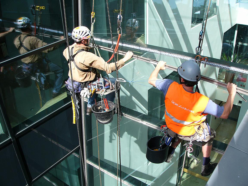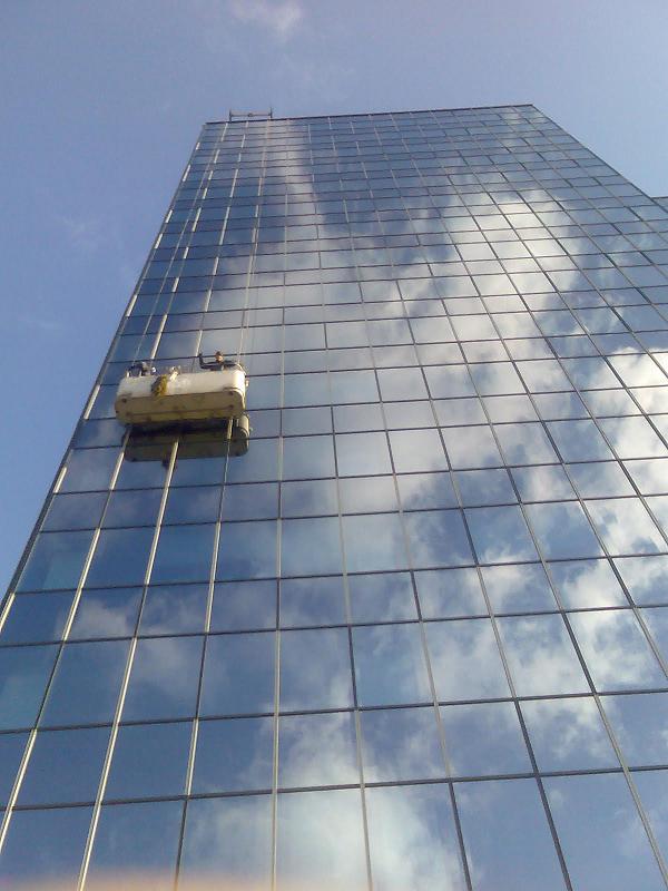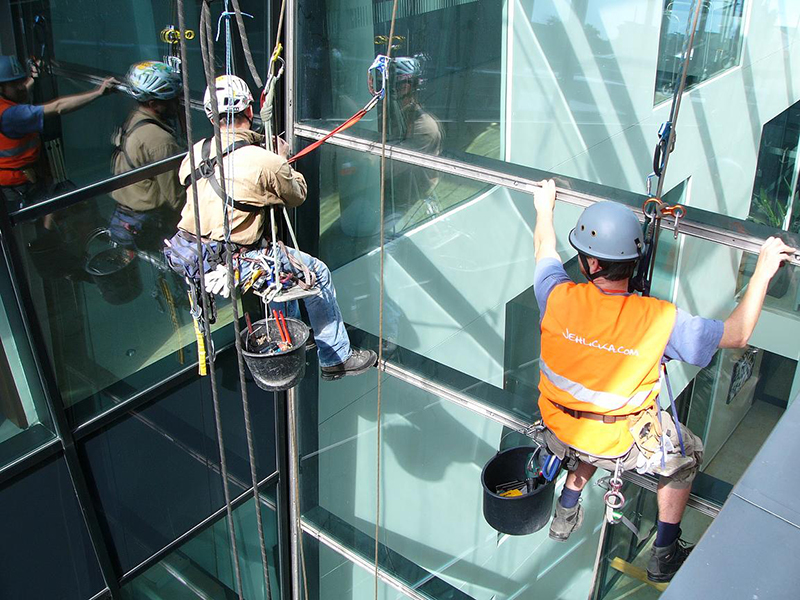 TOKOVO – kompletní mytí vnější prosklené fasády horolezeckou technikou a ze závěsné plošiny