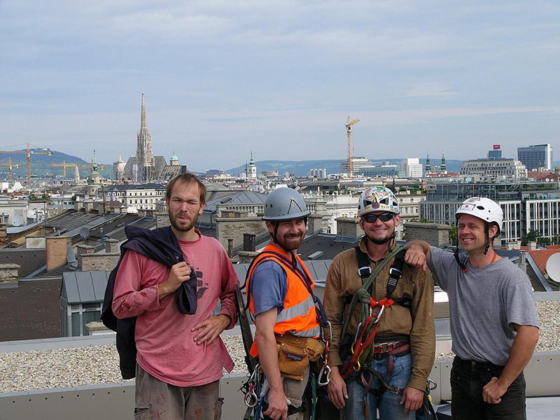 AK Vídeň – demontáž a montáž lišt rastrové fasády horolezeckou technikou